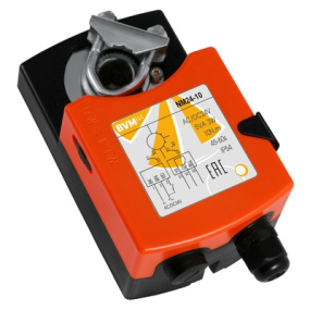 электропривод, управляющий сигнал 2-позиционный, напряжение 24 В, положение при монтаже: горизонтальное, мощность при вращении 5 Вт, мощность при удержании 2,5 Вт, степень защиты: IP54, реверсивный, ON/OFF выключатель, 150 сек, крутящий момент 10 Нм, максимальная площадь заслонок 1м2, диаметр вала 16 мм,